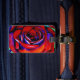 avec un design original de fleur de macro rose rouge anglais à partir d'une aquarelle originale peinture de Sacha Grossel Art. Gros gros plan de fleur pourpre avec des reflets bleus inspirés de l'amour et de la passion.