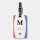 Balise de nom Patriotique rouge blanc et bleu pour les bagages de voyage. Customisez le nom, l'initiale et les coordonnées.