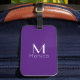 Balise de bagage avec couleur violet royal arrière - plan et polices blanches.Design simple et tendance par Alma Wad.Personnalisez-le avec votre nom et monogramme maintenant ..