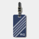 Étiquette À Bagage Sapphire foncé Monogramme à rayures bleu et blanc