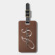 Étiquette à la mode de bagage du monogramme des hommes. Caractéristiques de conception de monogramme et de votre nom sur un arrière - plan en cuir brun d'imitation de texture. (Aucun vrai cuir ne sera employé) ajoutez vos détails de contact sur le dos. Perfectionnez le cadeau pour lui.