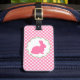 La silhouette d'un lapin rose mignon se repose à l'intérieur d'un cadre de fleur blanche avec une frontière de vert de ressort. Les contrôles doux, roses et blancs de guingan composent l'arrière - plan.