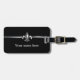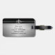 Ces étiquettes noires de bagage de Silver Fleur de Lis vous aideront à maintenir votre bagage dans le style. Le bagage étiquette la caractéristique qu'un arrière - plan noir s'est divisée par une rayure argentée a décoré d'un symbole de Fleur balayé par imitation de lis en métal. Le dos comporte le même symbole sur un arrière - plan balayé par imittion en métal. Personnalisez avec votre nom sur l'avant et information de contact sur le dos.