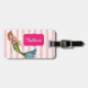 Étiquette À Bagage Sirène d'aquarelle avec cheveux longs