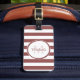 Étiquette À Bagage Sleek Marsala Awning Stripes Nom et monogramme