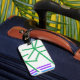 Cette conception présente un abstrait festif qui pourrait laisser l'équipage et les passagers de l'aéroport regarder votre étiquette de bagage.