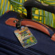 Faites ressortir vos bagages sur un carrousel d'aéroport avec des étiquettes uniques ! Ce joli porte bagage est une adaptation d'une peinture d'art d'une petite rue de Sainte-Croix, Iles Vierges, réalisée par l'artiste américaine Anna Unterman. La scène lumineuse et ensoleillée est une émeute de couleurs. Sur l'arcade, une vigne de bougainvilliers rouge, rose et magenta, des vignes à flamme orange et d'autres arbustes et feuilles verts. Les bâtiments colorés sont jaunes, dorés, bleus et verts. Reproduite avec l'autorisation de la succession d'Anna Unterman. Tous droits réservés. Le dos contient vos renseignements personnels. Tout le texte peut être customisé.