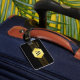 Cette fonction d'étiquette à bagages est noire avec des accents dorés. Cliquez sur le bouton CUSTOMISER IT pour modifier, déplacer, supprimer, redimensionner n'importe quel graphique ou ajouter votre propre texte, police et couleur de police.