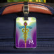 Elégant, artistique.classy or caduceus avec serpents dorés entrelacés, ailes bleues et pierres 3D, lumières vibrantes et ondes fractales dans violet, aqua bleu, turquoise, turquoise, jaune, blanc.Caduceus est le symbole de l'astrologie grecque antique, médecine et guérison, sceptre de Hermes messager des dieux et, divinité du signe zodiacal Gemini. Design, modélisation et rendu de bijoux cool par Bulgan Lumini (c).
