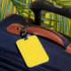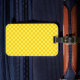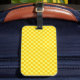 Marque à bagages en damier à combinaison jaune. Copyright © Shirley Taylor. Tous droits réservés.