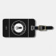 Travel with golf flair using this luggage tag featuring the bold “Talk Birdie To Me!” design. A male golfer silhouette in crisp white is framed by curved text on a solid black background.