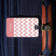 Une étiquette à bagages rose et blanc à la mode avec un motif chevron de crayon de couleur à la main. Personnalisez ce design moderne et élégant en zigzag rose en ajoutant votre nom.