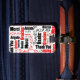 Noir, rouge et blanc pour se démarquer de la foule avec une étiquette à bagages conçue avec un remerciement multilingue typographie Merci rouge et noir. Personnalisez le texte du modèle pour l'arrière ou sélectionnez le style du carte de visite avec un emplacement à l'arrière.