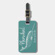 Illustration narval mignonne en étiquette de bagage vert sur mer blanc avec votre nom personnalisé sur le dos.