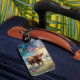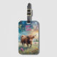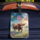 Étiquette À Bagage Vache de Highland dans le champ de fleurs
