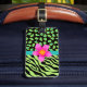 Étiquette À Bagage Vert, noir et Turquoise Zèbre et Cheetah Rose Fleu