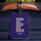 Étiquette À Bagage Vert violet jaune floral Monogramme initial E bleu