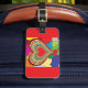 Easily identify your bags with these durable luggage tags. Each tag displays the bright rainbow layered heart graphic, making your luggage instantly recognizable. The vibrant multi-color and concentric pattern ensure your bag stands out. A practical accessory featuring a cool, modern graphic and abstract shapes with a groovy design.