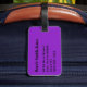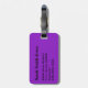Balise de bagage avec nom et adresse sur une couleur arrière - plan violet solide. Personnalisez avec votre nom et vos informations d'adresse en utilisant les modèles faciles. La couleur de police, le style de police et la taille de police sont personnalisables.