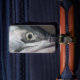 Décoré d'une image rapprochée du visage d'un saumon argenté également connu sous le nom de Saumon Coho (Oncorhynchus kisutch) des eaux glacées du détroit Prince William de l'Alaska. Par Ted Raynor