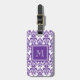 Étiquette À Bagage Votre monogramme, motif pourpre foncé 2 de damassé