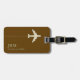 Un article simple et élégant avec l'image graphique d'un avion sur un arrière - plan brun foncé, avec votre nom et vos initiales... pour identifier vos bagages à l'aéroport.
