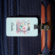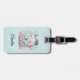 A luggage tag with a magical image featuring pastel colored butterflies in a jar.