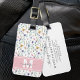 Personalized Elegant Wildflower Luggage Tag. Add a soft, colorful touch to your bags with this elegant design featuring a delicate wildflower pattern in pastel shades of pink, purple, blue, yellow, and green on a white background. A pink bar stretches across the bottom half with a white and gray monogram for a graceful, personalized accent. The back provides space for contact information. All colors can be changed to match your style. Perfect for luggage, diaper bags, gym bags, or travel gear.
