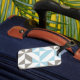 Étiquette À Bagage ZigZag géométrique bleu et argent