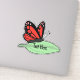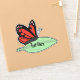 Un autocollant coloré et mignon avec un papillon monarque rouge assis sur une feuille. Un excellent moyen de étiquette de vos objets personnels.