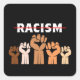Le design sur le thème de la justice sociale présente du texte RACISM recadré avec des poings surélevés à ombres multiples.