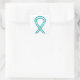 L'article présente une peinture artistique d'un ruban de conscience turquoise et blanc aquarelle peinture. La signification d'un ruban de sensibilisation blanc et turquoise montre un soutien à la sensibilisation au cancer du col de l'utérus. Ces autocollants peuvent être customisés pour faire de grands cadeaux de ruban de conscience!