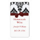 Un joli étiquette à mettre sur votre bouteille spéciale de vin fait maison ou à utiliser pour toute occasion spéciale. Il présente un motif damassé blanc et noir sur le dessus et un fond blanc. Un joli ruban rouge et un arc sont assis sur le dessus du étiquette. Vos informations sur le vin personnalisables vont dans le centre. Idéal pour les vins faits maison ou les vins cadeaux !