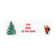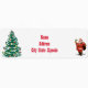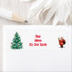 Un étiquette blanc aux angles arrondis, décoré sur le thème de Noël. Sur le côté gauche, il y a un sapin de Noël orné d'ornements colorés et de guirlandes. Il y a une illustration du Père Noël tenant une cloche et portant un sac. Le style général est festif et convient à la correspondance liée aux vacances.