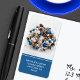 Les étiquettes d'adresse de retour personnalisées comportent une belle couronne de cône de pin avec des ornements bleus, argentés et blancs. MÊME invitations de vacances et cartes de voeux dans notre collection.