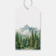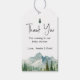 Envoyez les invités à la maison avec une touche d'aventure ! Cette marque de faveur offre une vue imprenable sur les montagnes d'aquarelles avec des pins luxuriants, parfait pour un baby shower d'inspiration nature. Une façon réfléchie de dire "merci" avec un charme rustique !