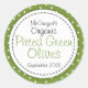 Étiquette alimentaire vert et blanc parfait pour étiqueter les olives vertes, chutney, huile ou autres fruits verts hués transformés en confitures, confitures, gelées ou autres aliments verts ou à base d'olive. Parfait pour les cadeaux de Noël, les fêtes d'échange de biscuits ou pour la vente de vos produits de la ferme au marché des fermiers et des foires artisanales. Utilisez ces autocollants pour sceller vos cadeaux de Noël ou pour un look professionnel à vos articles de vente. Idéal aussi pour les faveurs et les cadeaux faits maison pour les enfants à la famille et les amis. Lit actuellement Olives vertes à pois organiques de McGregor et ajoutez la date de production de votre article. Entièrement personnalisable avec votre propre nom et les détails du produit et la date. Conçu par Sarah Trett.