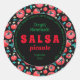 Motif de tomate à l'aquarelle sur fond noir, pour amateur de nourriture mexicaine, jardinier de légumes cultivés à la maison, producteur d'aliments biologiques, salsa maison, étiquette de conserve alimentaire pour dip ou tartinade, etc. Le texte comprend le nom du produit, le nom du producteur, la date et les ingrédients et peut être facilement modifié, supprimé ou personnalisé.