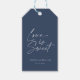 Ajoutez une touche de finition romantique à vos faveurs de mariage avec cette élégante étiquette cadeau "Love is Sweet". L'avant est ornée d'un arrière - plan bleu marine classique avec un délicat script blanc, personnalisé avec les noms et la date du couple. Au contraire, un motif floral marine sophistiqué ajoute un bel élément décoratif. Parfait pour décorer des boîtes à gâteaux, des sacs de remerciement ou des cadeaux de dessert — un détail intemporel que vos invités adoreront.