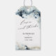 Aquarelle en bleu marine et or imitant les vagues et le sable sur la plage couplée avec l'élégant script personnalisé "amour et merci", toutes les autres informations est en serif police prêt pour une personnalisation facile. Remettez vos remerciements spéciaux à votre invité avec cette belle étiquette de faveur personnalisable