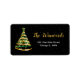 Cette élégante et chic étiquette de adresse est ornée d'un arbre de Noël à ruban vert et doré, surmonté d'une étoile. Le texte combine écriture manuscrite et polices sans serif modernes pour un look élégant et sophistiqué. La neige tombante, les flocons de neige et les étincelles donnent une touche festive et magique. C'est parfait pour Noël et la période des fêtes.
