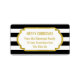 Étiquettes de adresse de Noël aux rayures blanches et noires motif et détails dorés.