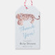 Cette mignonne étiquette cadeau de baby shower "Merci" présente une maman tigre portant son petit sur un arrière - plan bleu bébé / bleu pâle. L'envers présente des motifs de tigres en bleu bébé. Personnalisez-le selon vos besoins. Vous pouvez trouver des produits correspondants dans mon magasin.