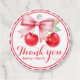 Ajoutez une touche de finition douce à vos faveurs de fête avec cette étiquette cadeau circulaire à thème cerise. Doté de deux cerises d'aquarelle brillante liées avec un arc rose doux, encadré dans une bordure en vichy rouge sur un arrière - plan texturé blanc. Parfait pour les baby showers, les douches nuptiales, les anniversaires, ou toute célébration où vous voulez dire "merci beaucoup baies". Customisez avec votre propre texte pour correspondre à votre thème d'événement.