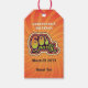 Les étiquettes cadeaux du parti des années 60 avec une typographie de style super de "60's Party". Ce design comprend des éléments de rouge, d'orange, de jaune, de vert clair et de violet foncé, des starburst en spirale, et des conceptions inspirées des années 60. Inclure un modèle pour la personnalisation personnelle.