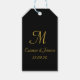 Étiquette cadeau de mariage pour l'or et le monogramme noir