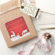 Étiquette-cadeau pour la collection White Reindeer and Snowflakes. Une famille de rennes blancs s'ébattent sur des collines enneigées tandis que des flocons de neige croustillants flottent vers eux. Un arrière - plan rouge apporte une touche chaleureuse et festive à l'ensemble. Parfait pour les enfants ou les enfants à coeur !