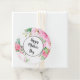 Cette étiquette cadeau est présentée en forme ronde avec une jolie impression aquarelle de fleurs roses.