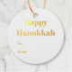 Happy Hanoukka feuille or et blanc à partir de blanc mignon minimaliste moderne simple élégant Hanoukka Foil Favor Tags. Texte entièrement personnalisable sur le devant arrière - plan blanc uni et le dos bleu.