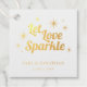 Cette étiquette de faveur blanche avec imprimé feuille d'or offre un design parfait pour un mariage mousseux envoyer. Le texte dit "Let Love Sparkle" et est accentué par les starbursts. Le texte personnalisé vous permet d'ajouter les noms du couple et leur date de mariage.